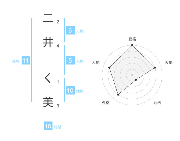 二井 く美さんの総格は16画の5点!