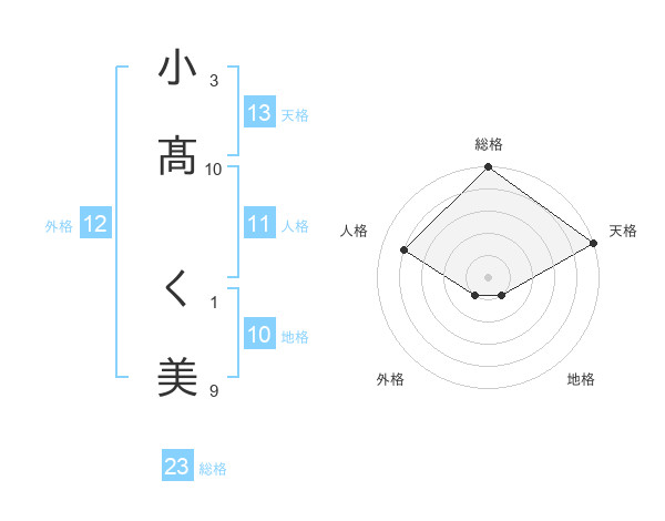 小髙 く美さんの総格は23画の5点!