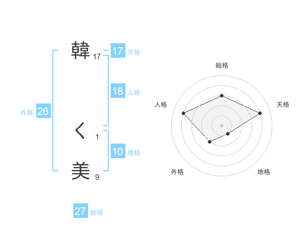 韓 く美さんの総格は27画の3点!