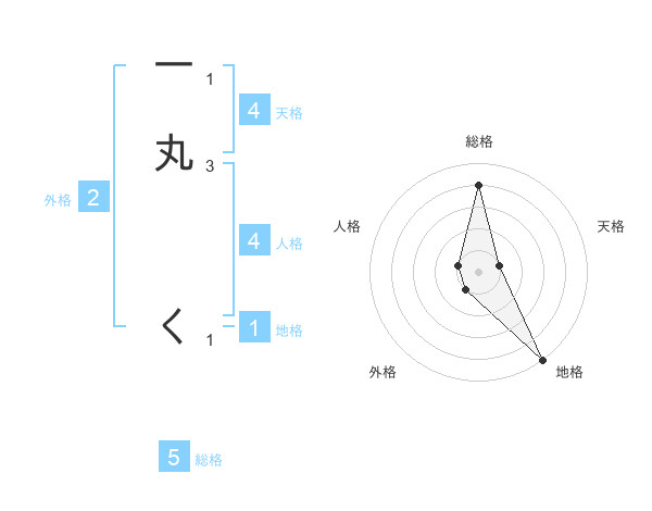 一丸 くさんの地格は1画の5点!