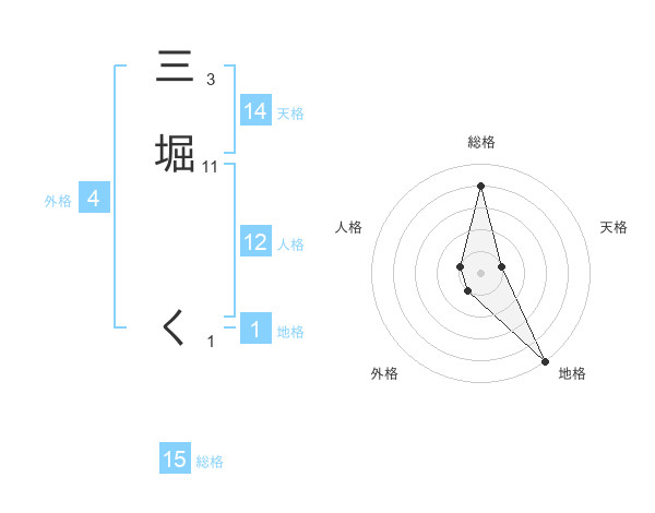 三堀 くさんの総格は15画の4点!