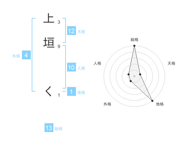 上垣 くさんの総格は13画の5点!