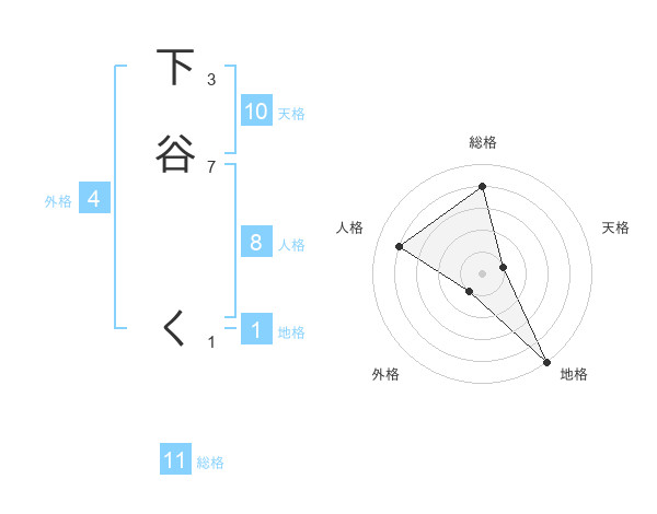 下谷 くさんの総格は11画の4点!