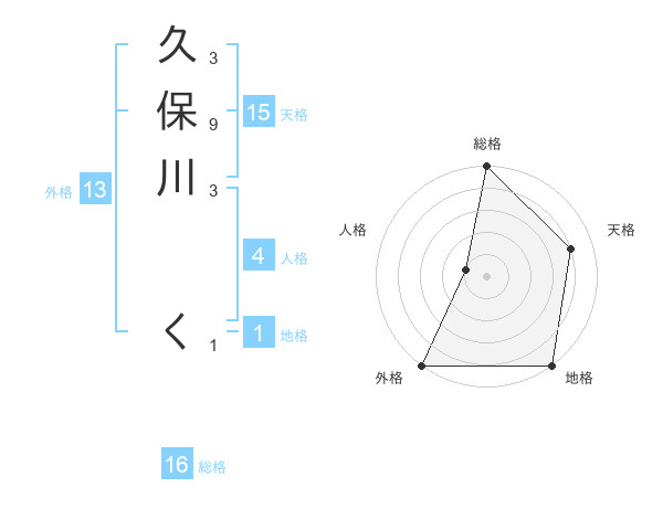 久保川 くさんの外格は13画の5点!