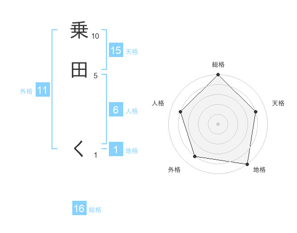 乗田 くさんの総格は16画の5点!