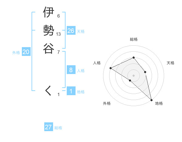 伊勢谷 くさんを姓名の画数から五運を鑑定