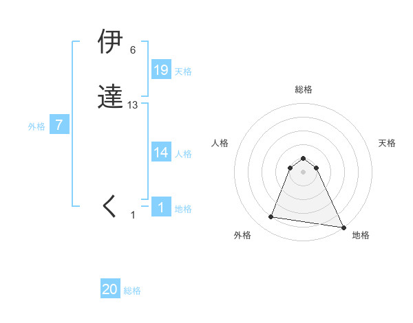 伊達 くさんの地格は1画の5点!