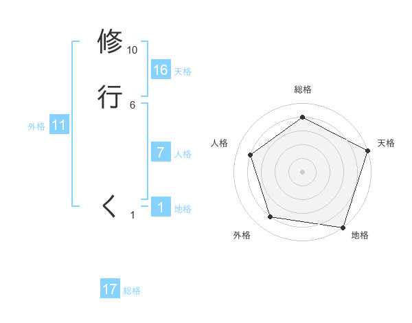 修行 くさんの総格は17画の4点!