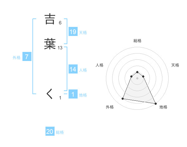 吉葉 くさんの天格は19画の1点!