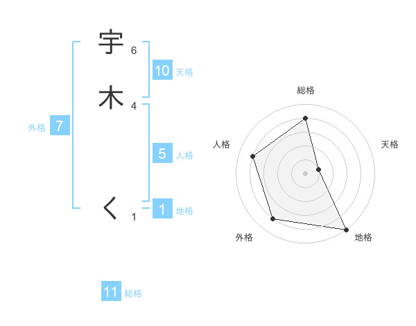宇木 くさんの天格は10画の1点!