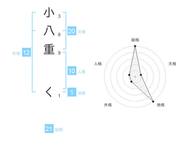 小八重 くさんの総格は21画の5点!