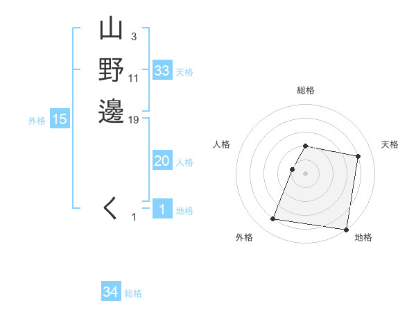 山野邊 くさんの天格は33画の4点!