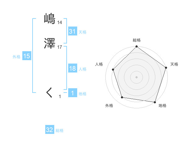 嶋澤 くさんの天格は31画の5点!