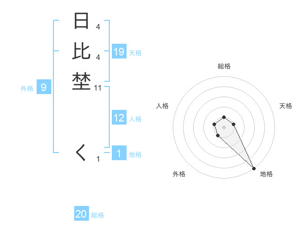 日比埜 くさんの地格は1画の5点!