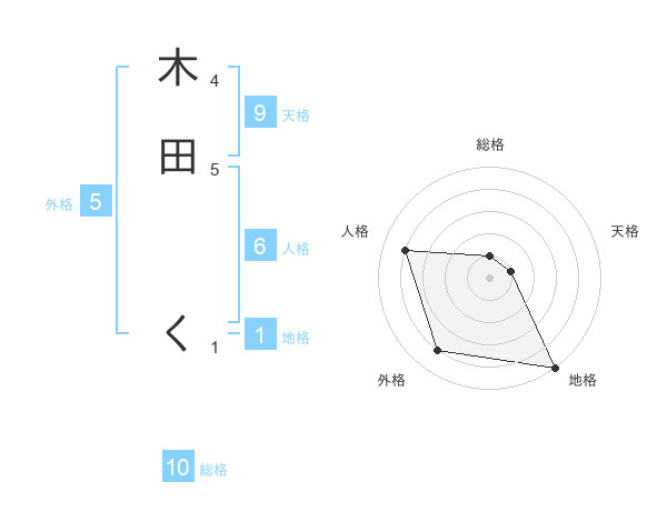 木田 くさんの総格は10画の1点!