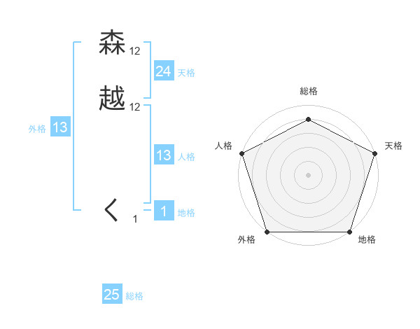 森越 くさんの外格は13画の5点!