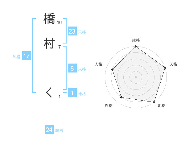橋村 くさんの天格は23画の5点!