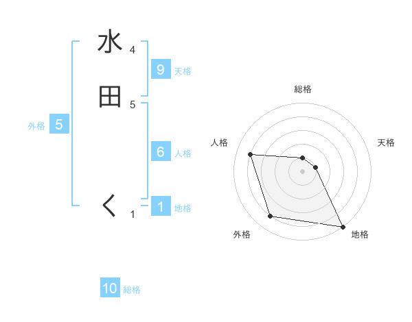 水田 くさんの地格は1画の5点!