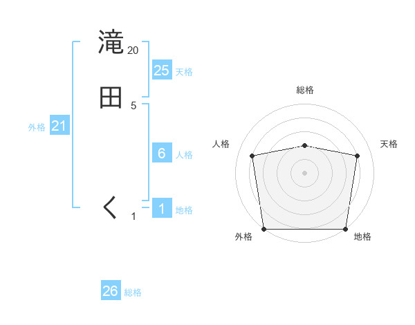 滝田 くさんの天格は25画の4点!