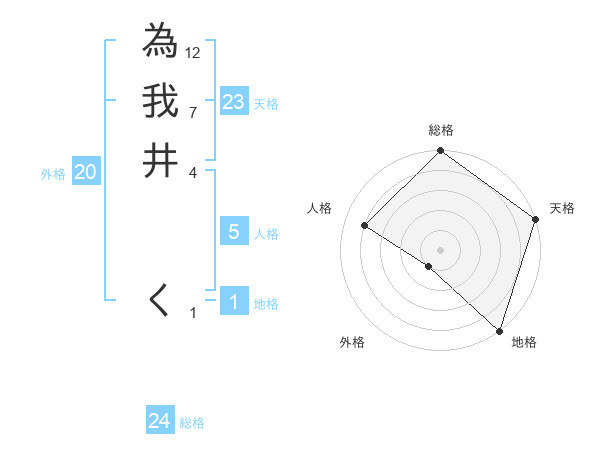 為我井 くさんの天格は23画の5点!