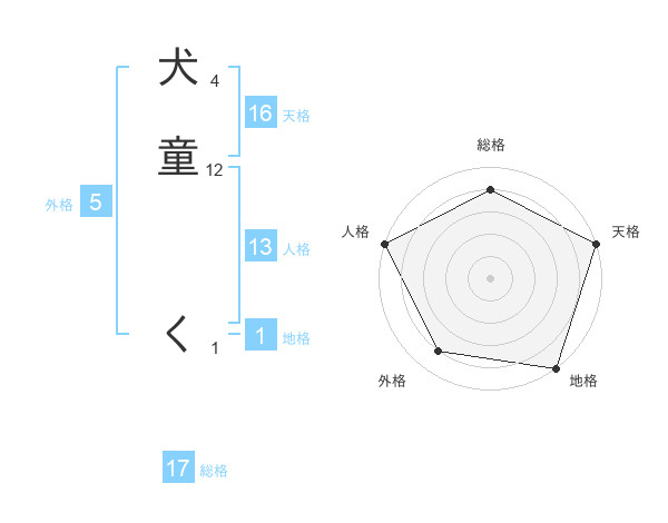 犬童 くさんの天格は16画の5点!