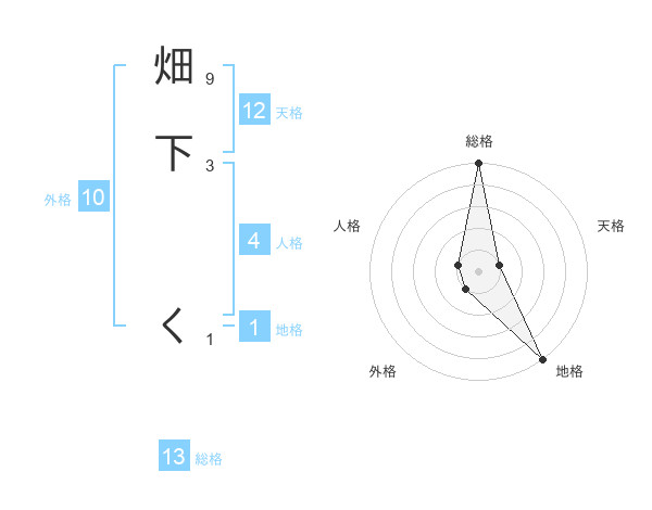 畑下 くさんの総格は13画の5点!