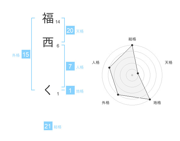 福西 くさんの総格は21画の5点!