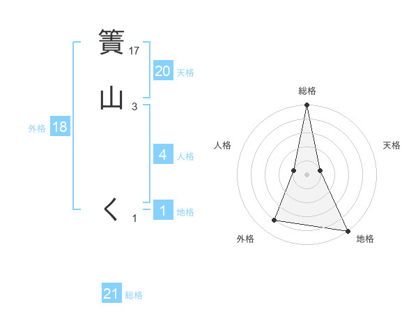 簀山 くさんの総格は21画の5点!