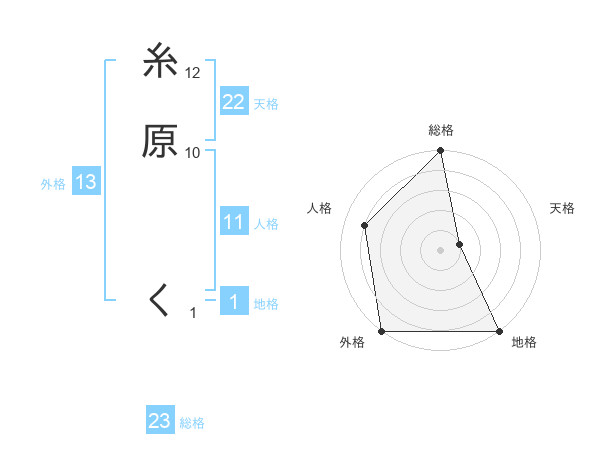 糸原 くさんの外格は13画の5点!