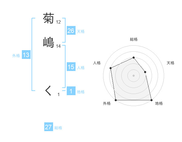 菊嶋 くさんを姓名の画数から五運を鑑定