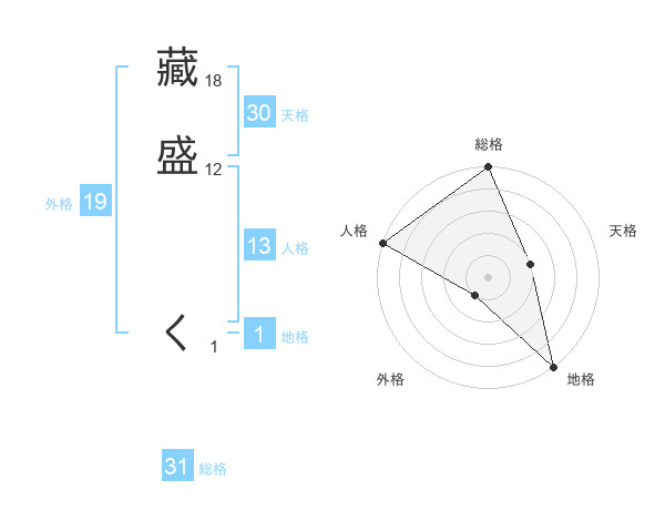 藏盛 くさんの総格は31画の5点!