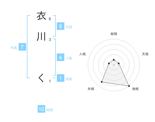 衣川 くさんの総格は10画の1点!