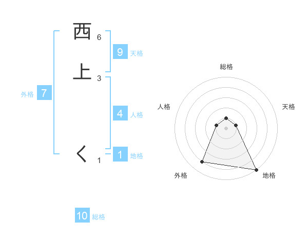 西上 くさんの地格は1画の5点!