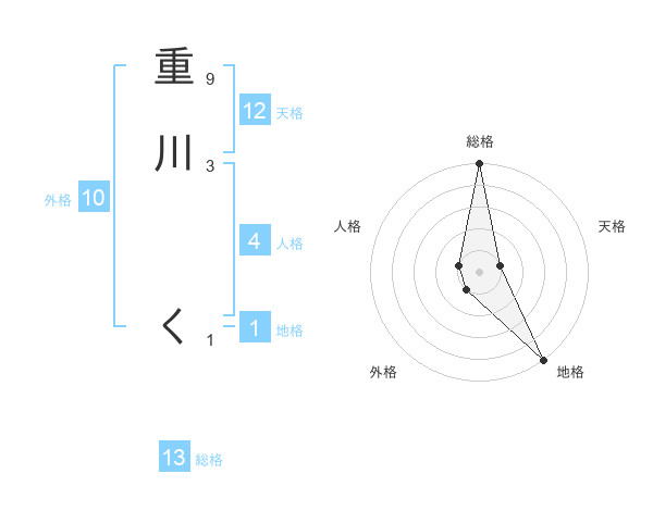重川 くさんの総格は13画の5点!