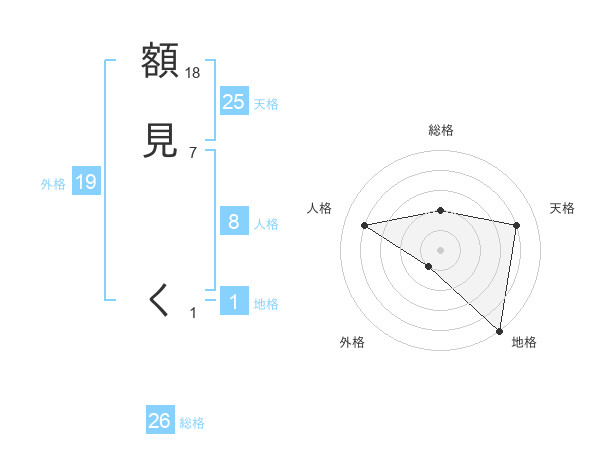 額見 くさんの天格は25画の4点!