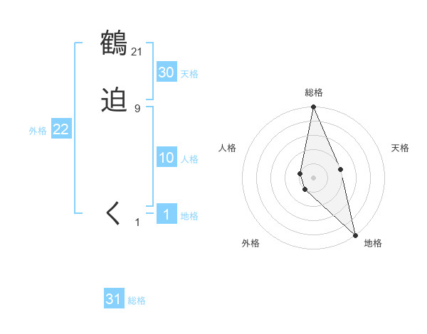 鶴迫 くさんの総格は31画の5点!