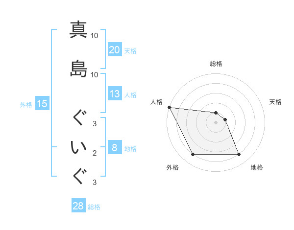 真島 ぐいぐさんを姓名の画数から五運を鑑定
