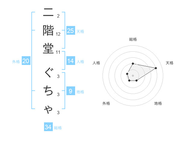 二階堂 ぐちゃさんの天格は25画の4点!