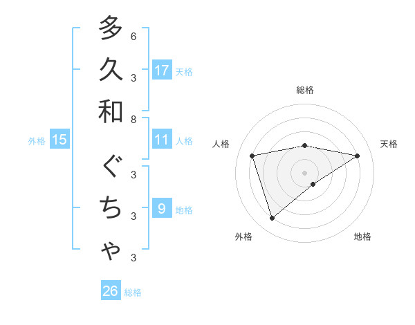 多久和 ぐちゃさんを姓名の画数から五運を鑑定