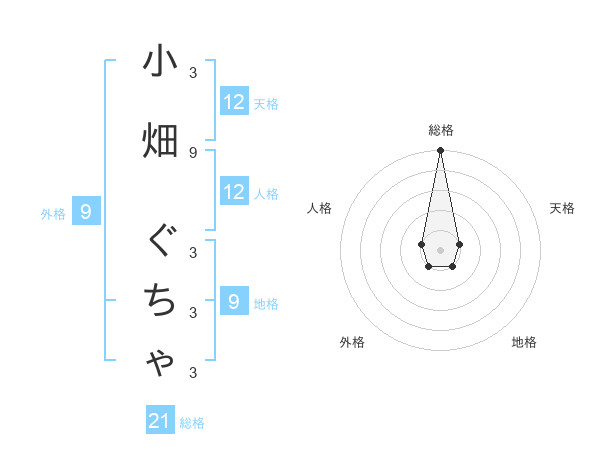 小畑 ぐちゃさんの天格は12画の1点!