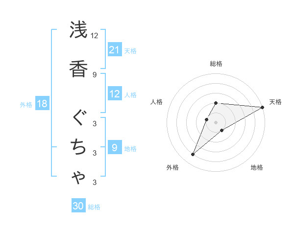 浅香 ぐちゃさんの天格は21画の5点!