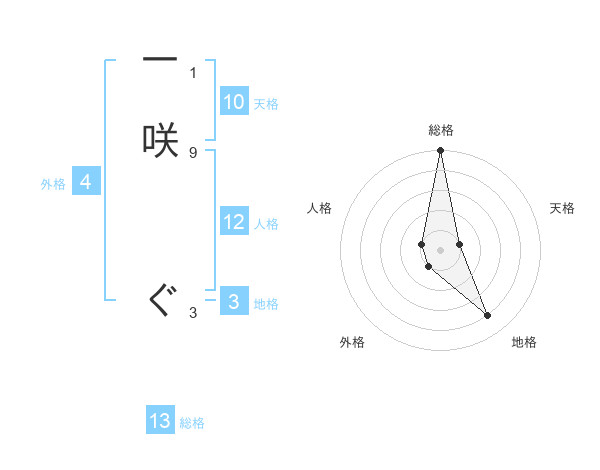 一咲 ぐさんを姓名の画数から五運を鑑定