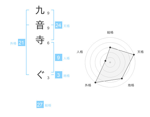 九音寺 ぐさんを姓名の画数から五運を鑑定