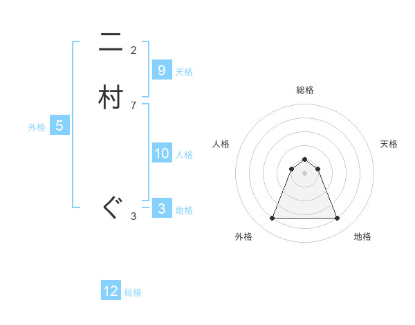 二村 ぐさんの外格は5画の4点!
