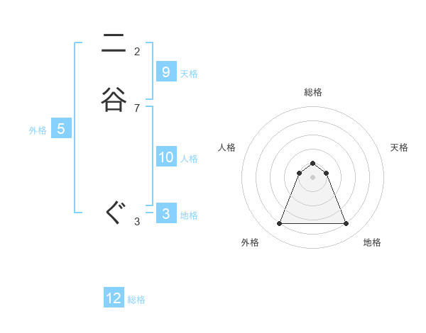 二谷 ぐさんの外格は5画の4点!