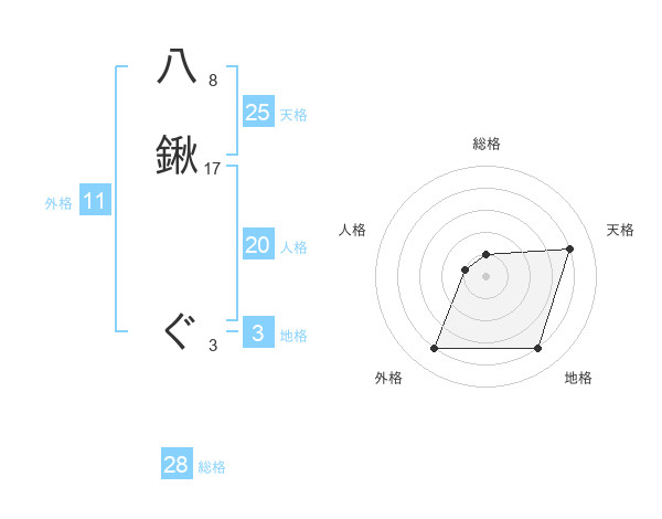 八鍬 ぐさんの天格は25画の4点!