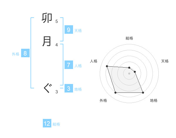 卯月 ぐさんを姓名の画数から五運を鑑定