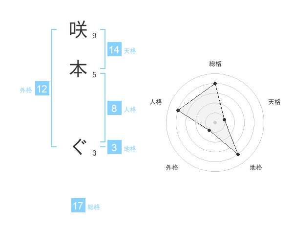 咲本 ぐさんの総格は17画の4点!