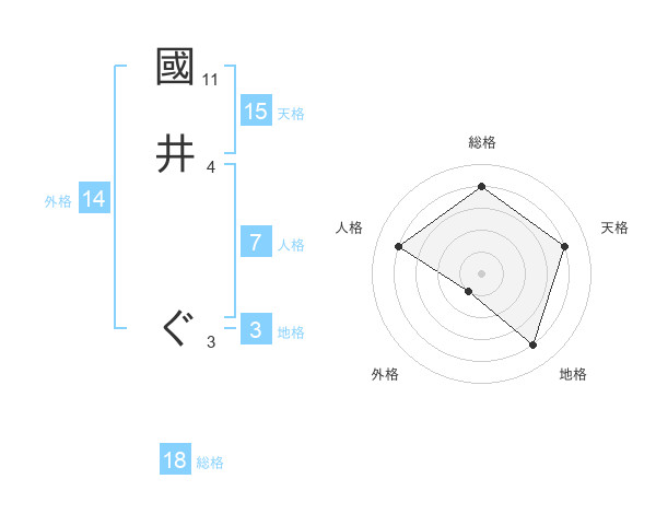 國井 ぐさんの天格は15画の4点!