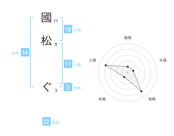 國松 ぐさんの天格は19画の1点!